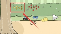 3.到左边再摘一个红苹果,将红苹果放在河对岸即可顺利过关!