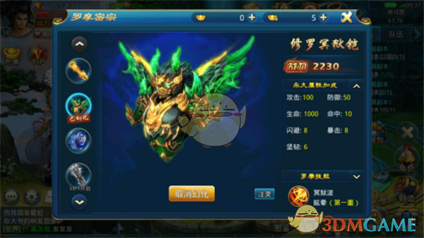 玩家可以通过VIP、完成主线任务、累积登陆和等级开启等多种方式激活神器。神器可以给人物增加属性,还能进行外观幻化。