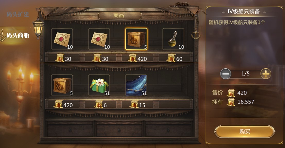 商会新设船只停泊码头,码头内每天提供往来的远洋商队舶来的珍稀货物,供商会内成员购买,更有一定的优惠力度。商会成员可使用商供兑换心仪商品,数量有限,船长们可要眼疾手快当机立断才行。随着商会停泊处的升级,货物品质和数量也会逐渐提升。